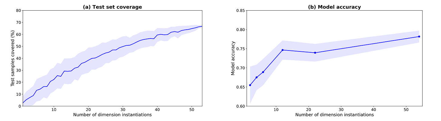 Given the task description and seed examples, BARRED identifies task-relevant dimensions that collectively span the domain — for instance, violation type, communication style, severity level, and user intent.