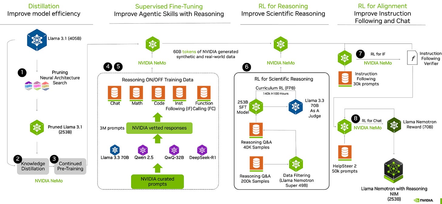 Figure 4: Training process for Llama Nemotron using multi-phase post-training for enhanced reasoning